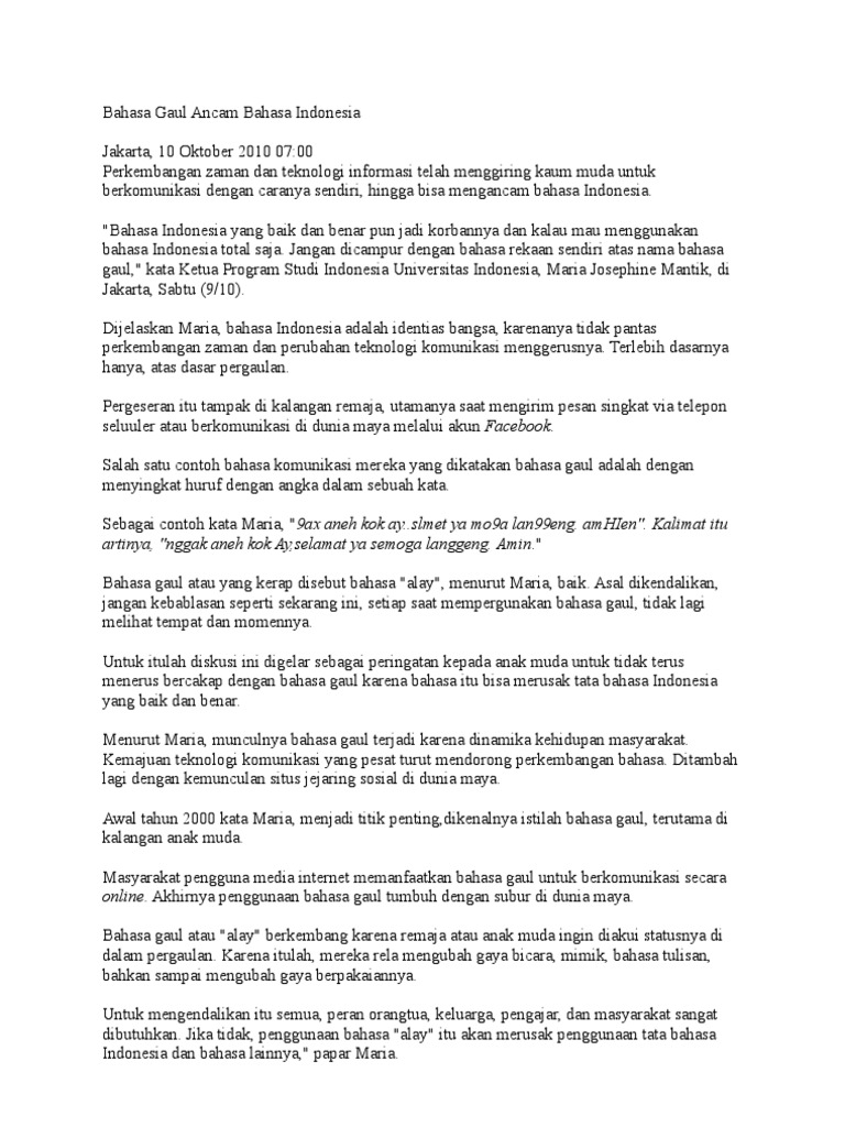 Bahasa Gaul Ancam Bahasa Indonesia Pdf